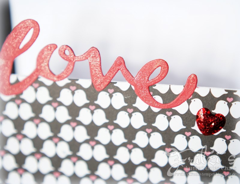 Manche stanzen den Schriftzug direkt aus der gefalteten Karte, damit er sich dann aufstellt, wenn man die Karte umfalzt. Ich habe ein extra Panel gestanzt und das vorne drauf gesetzt, weil es stabiler war. Damit man den Schriftzug richtig schön sieht, habe ich bei manchen den Shriftzug komplett ausgestanzt und aufgeklebt.